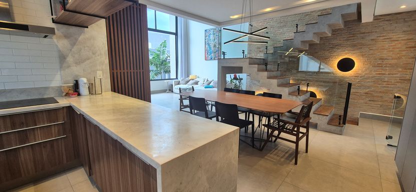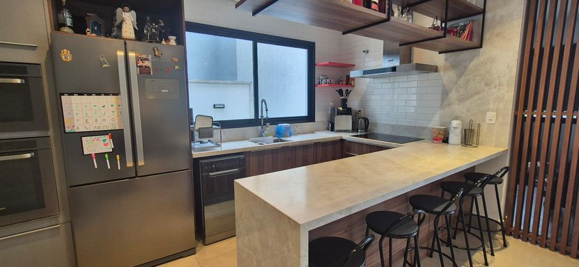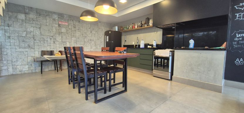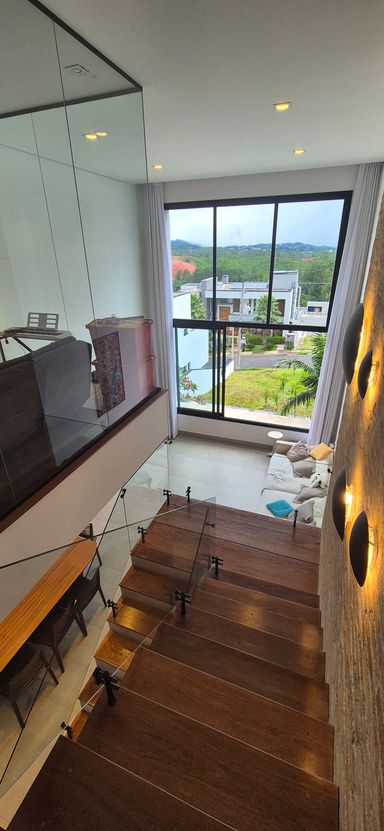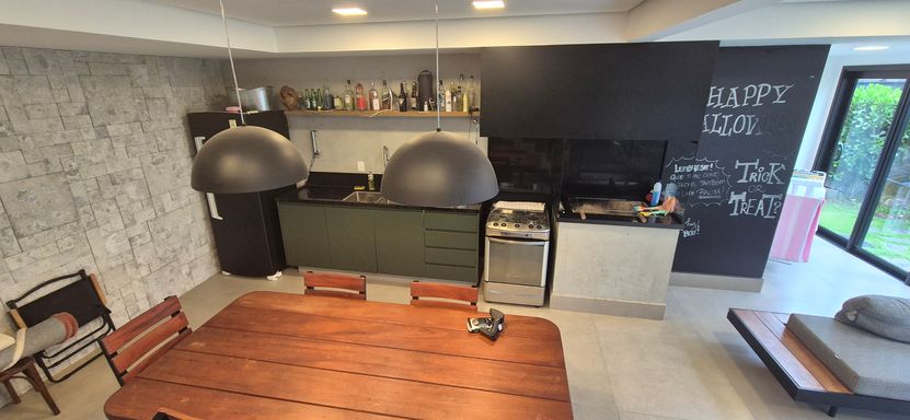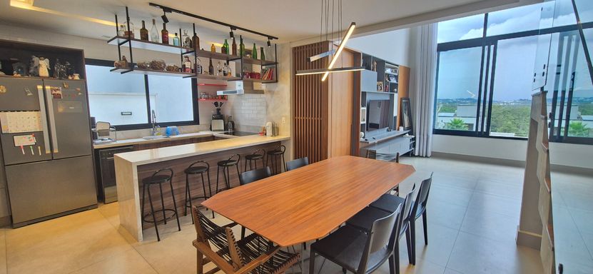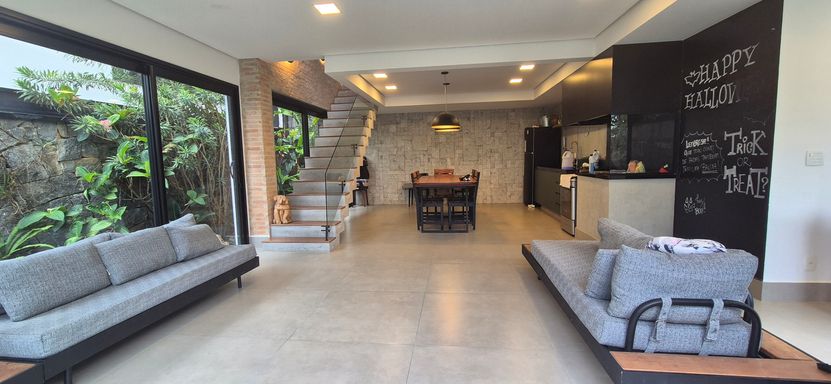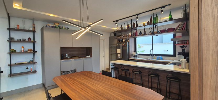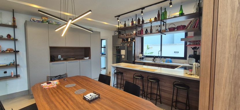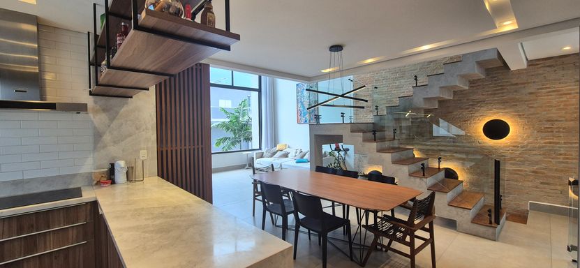 sala com pé direito duplo e super iluminado naturalmente - sala de jantar, estar e escritorio integrados com a cozinha em estilo americano, área de serviço e tudo muito bem pensando para o dia a dia e o conforto