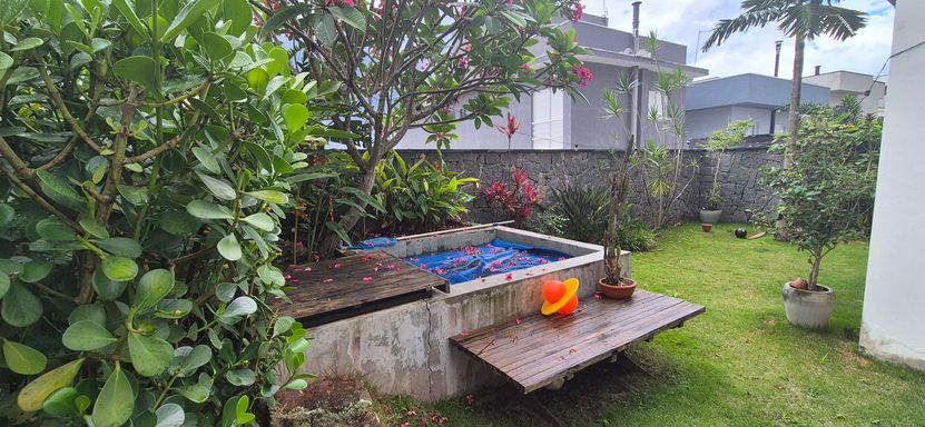 espaço gourmet com cerca de 39 metros quadrados para a diversão em família e amigos, bancada em granito com churrasqueira - banheiro e este ambiente conta com fechamento de vidro - quintal bem espaçoso com Hidro estili mini piscina, deposito e acessos laterais