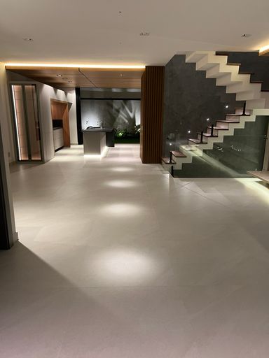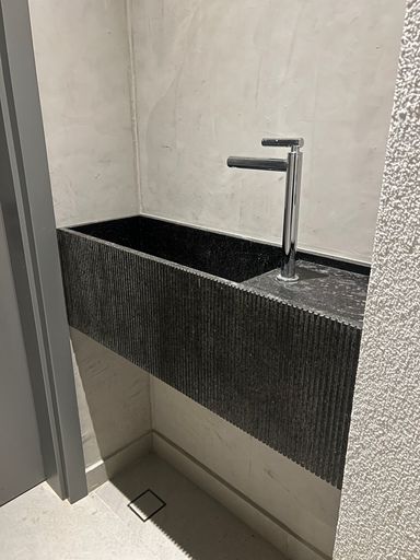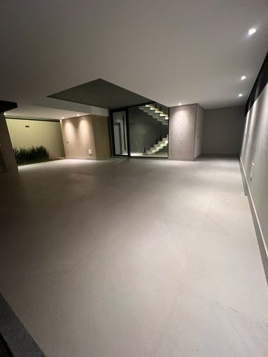1º nível rua, garagem grande até 3 veículos na parte coberta e 3 na descoberta, hall de entrada, espaço para deposito de garagem, outro espaço lateral, área de serviço com elevador de carga interligado a cozinha e área de serviço, área gramada e fachada ultra moderna.