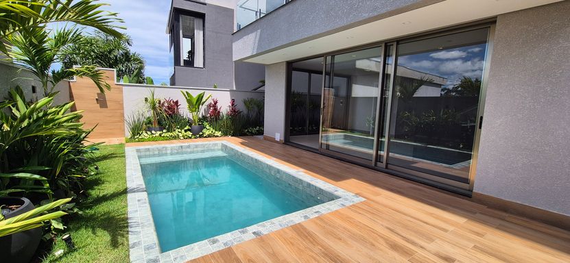* Persianas integradas em todas as suítes, automatizadas com controle + tela mosquiteira