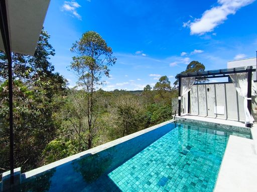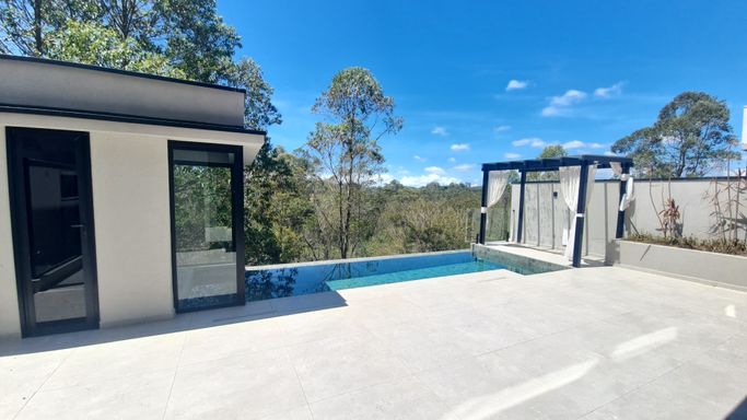 O Projeto A Casa da Mata está localizada no Condomínio Mosaico Essence com 405 m² e revestimentos de alto padrão, a residência foi projetada para atender às necessidades da sua família.