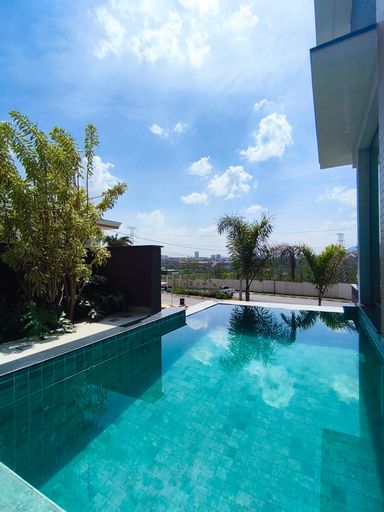 sala de estar e TV, sala de jantar integradas com a cozinha americana grande, e espaço gourmet anexo a cozinha e sala de jantar, piscina com a melhor localização e que completa a paisagem dessa residencia magnifica.